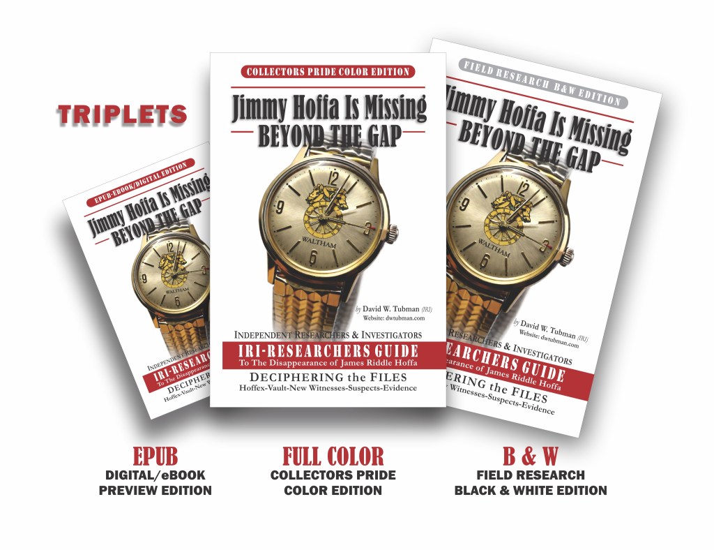 Since the first edition, “Jimmy Hoffa Is Missing-The Gap” (2020)… There’s a NEW BOOK in town that tops the stack. People are already calling it *THE HOFFA CASE BIBLE*, filled with research tools that help to Decipher The Evidence and wade through the complex HOFFEX and the Vault files.
